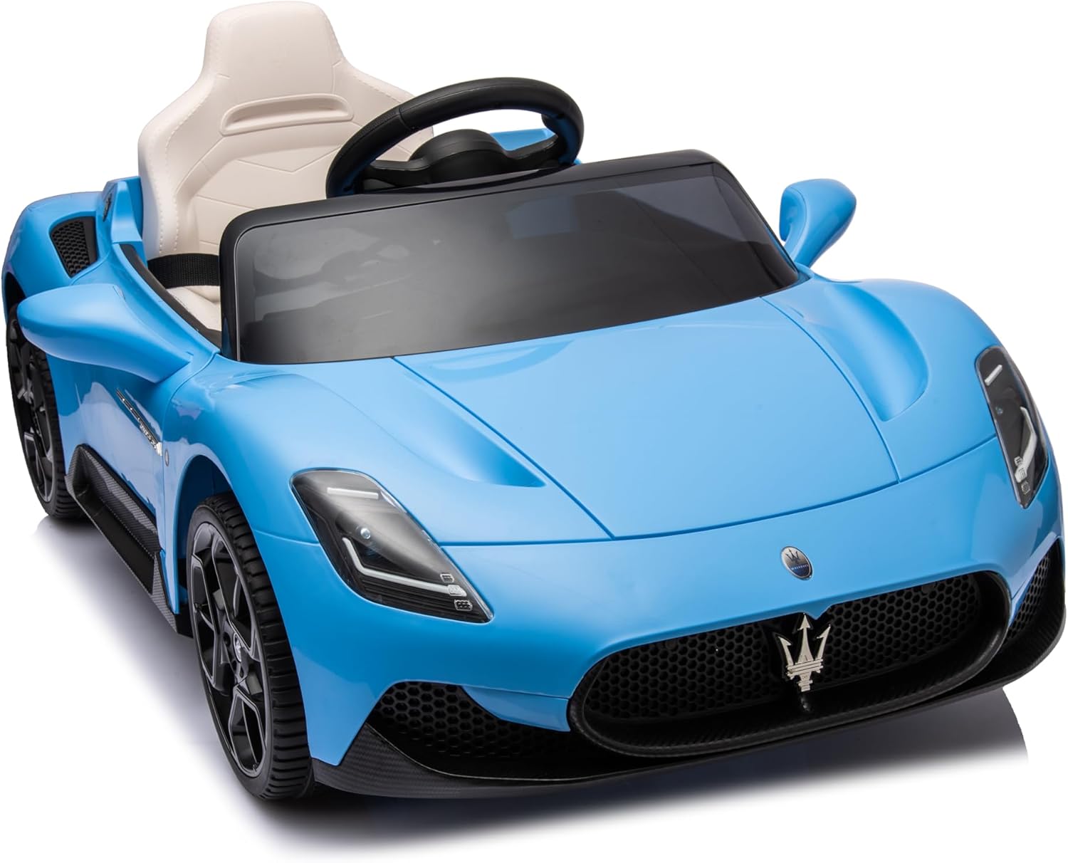 O veículo possui a licença oficial da Maserati, o que garante um design com acabamento metálico, rodas esportivas e portas que abrem, simulando o carro real.