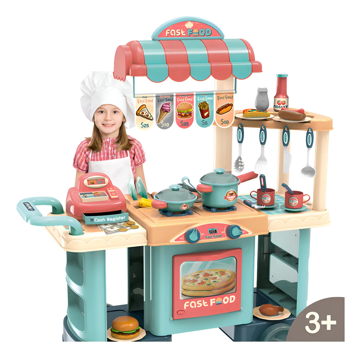 Ao escolher este modelo em vez de uma cozinha doméstica padrão, você não está apenas dando à criança um lugar para fazer comida de mentira; você está dando a ela um balcão, um negócio e a confiança para interagir com o mundo.