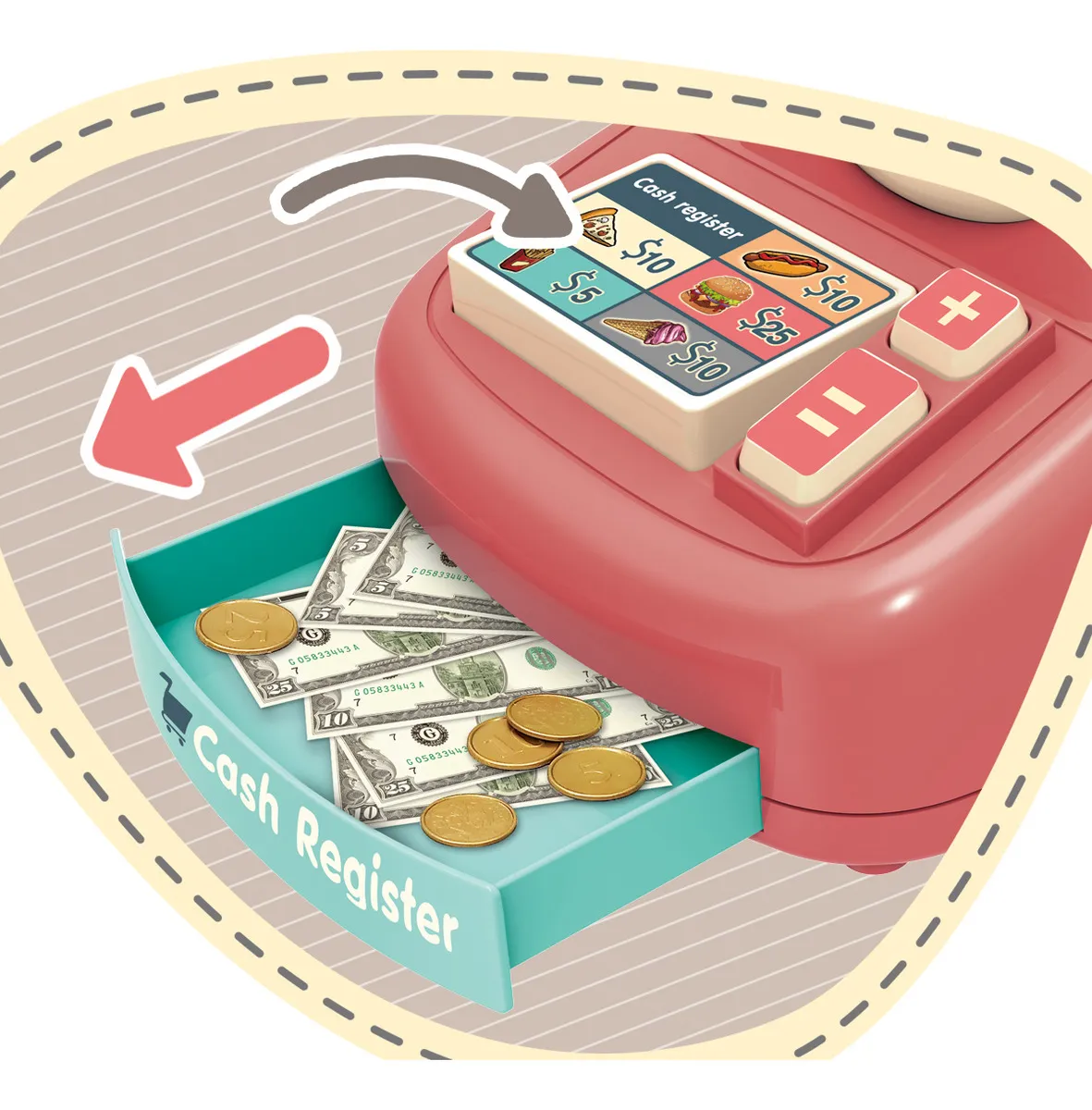 A caixa registradora serve como o ponto focal dessa transação, transformando a matemática abstrata em uma operação concreta e divertida.