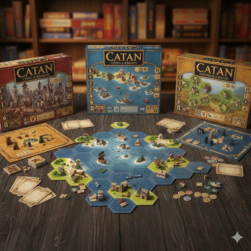 Catan (originalmente Settlers of Catan) é frequentemente citado como o primeiro “clássico moderno” do gênero e o ponto de partida ideal para muitos.